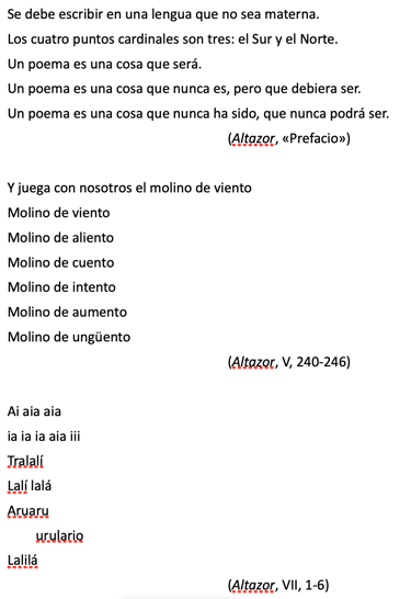 De los ejemplos aludidos respecto a las obras de César Vallejo y Vicente Huidobro, podemos observar que los recursos empleados de los planos fonético-fonológico y morfosontáctico con la intención de crear uns disrupción específica en el lenguaje son los mismos que los empleados por García Faet en su plaquette experimental. El “Prefacio” a Altazor de Huidobro está reconocido por la historiografía literaria como ideario estilístico del creacionismo y, a la luz de las composiciones de las generaciones más recientes, está visto que su lección está bien interiorizada.